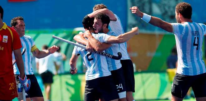 Argentina llegó sin hacer mucho ruido a Río, pero mostrando una regularidad durante la temporada que permitía ilusionarse. Así, pasó tercero de su zona (dos victorias, dos empates y una derrota) y se encontró con los españoles en el duelo que te deja o te manda a casa. Y a casa se van los europeos. Porque Los Leones salieron con hambre, con las garras afiladas y con los colmillos listos. Mordieron. Vaya si mordieron… Peillat, luego de un córner corto y con una buena definición abajo, contra un palo, marcó antes del cierre del primer cuarto. Antes, Vivaldi había salvado el arco, como para dejar en claro que atrás también hay piel. La diferencia no fue mayor en el PT porque Ignacio Ortiz no pudo definir con el arco libre y porque el arquero español sacó algunas de Peillat. En el ST Manuel Brunet casi lo liquida y al toque el palo salvó a Los Leones (remate de Romeu). Pero a falta de 3m47s para el final Pau Quemada marcó el empate, con una definición idéntica a la del gol argentino. A falta de 1m27, penal para que Juani Gilardi vuelva a poner a Los Leones en el mejor momento de su historia. Firme, a la derecha y adentro. El doble y triple turno que pregona Retegui, con devoción por el trabajo, tiene premio.