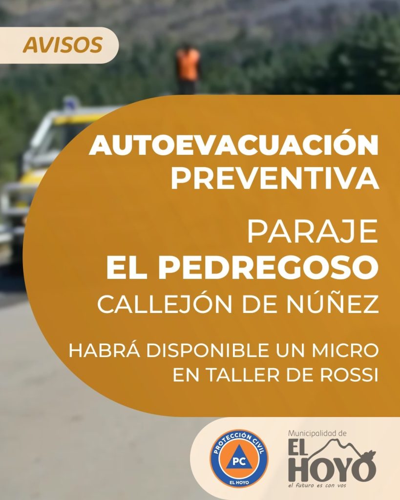 Se solicita a las personas que se encuentren en los sectores mencionados dirigirse hacia la Escuela 223, con destino final a la Ruta Nacional 40. Las autoridades recalcan la importancia de llevar consigo únicamente las pertenencias esenciales y contar con una botella de agua para hidratación.