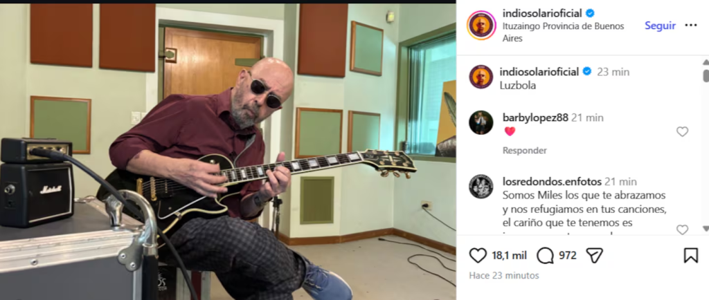Fiel a su estilo, el artista no dio declaraciones públicas: eligió una imagen en su estudio de grabación, Luzbola, guitarra en mano, para dejar en claro que se encuentra bien.