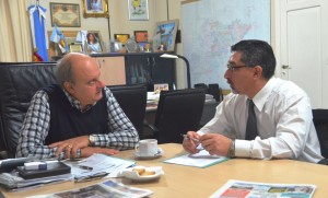 Hoy se reunieron en el municipio su titular, Abel Reyna y el intendente Néstor Di Pierro, para planificar cuestiones referidas a la concreción de planes de vivienda en la ciudad y analizar el estado en que se encuentran las mensuras de lotes en diferentes zonas urbanas.
