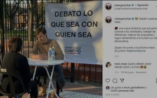 «Debatir nuestras ideas, una nueva dinámica que nos permite conocer a los candidatos, trabajar las diferencias, mejorar las propuestas y seguir alimentando a la ciudad con salud democrática. ¡Espero te sumes a la próxima mesa! ¡Es juntos! #seamosmayoría», escribió García Moritán en su cuenta de Instagram al lado de una imagen suya sentado en una plaza con un inmenso cartel de fondo que decía: «Debato lo que sea con quien sea».