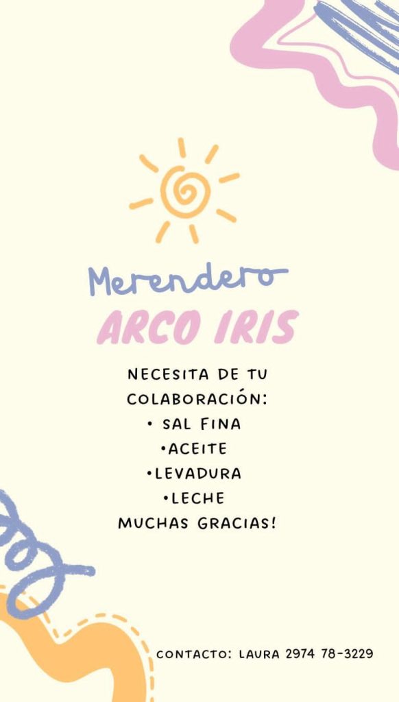 Quienes quieran colaborar pueden hacerlo a través del Facebook Merendero Arcoiris o al 2974783229.