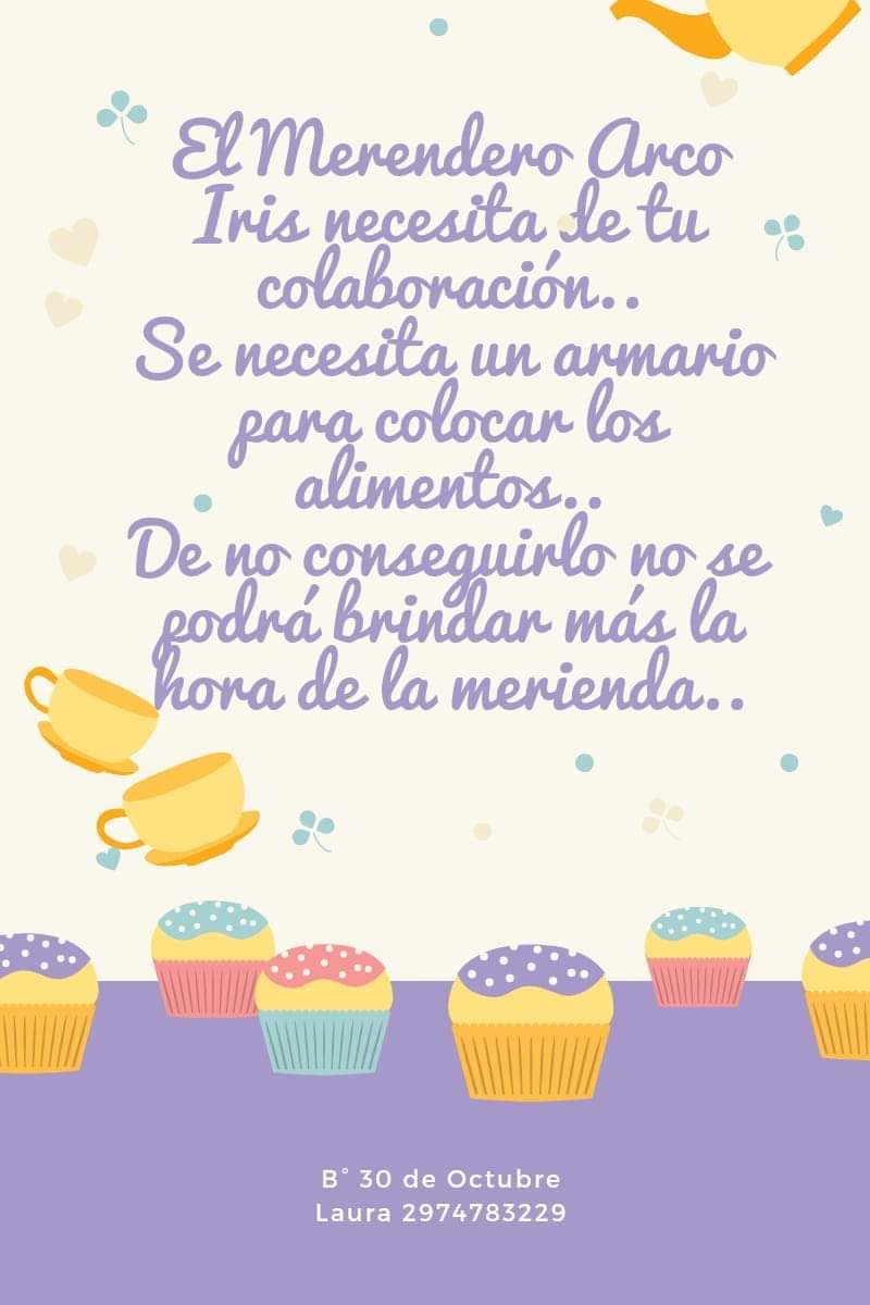 El merendero Arcoiris se encuentra en el barrio 30 de octubre y solicita colaboración con un armario para guardar los alimentos.