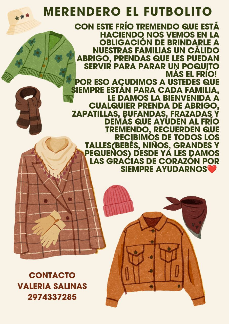 Con la llegada de las bajas temperaturas el Merendero El Futbolito, lanza una urgente campaña solidaria: una colecta de ropa de abrigo y elementos esenciales para enfrentar el frío.
