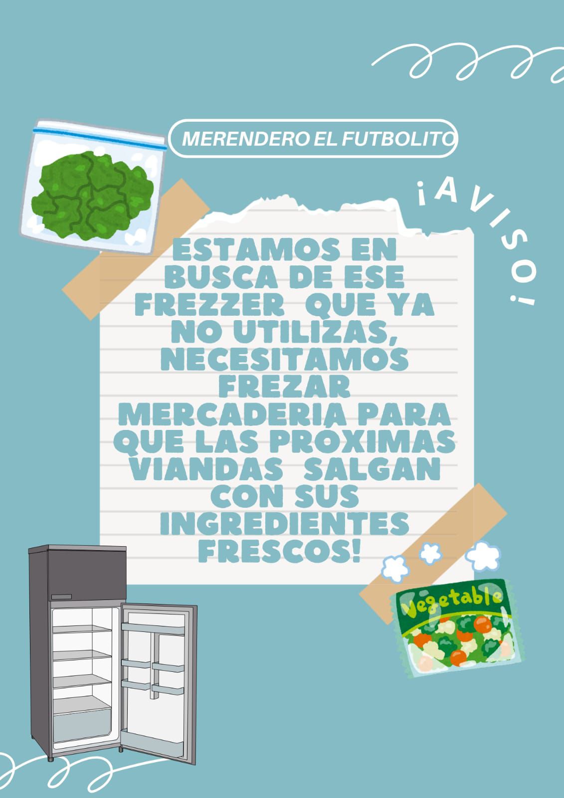 El merendero El Futbolito lanzó un pedido solidario a la comunidad ante la necesidad urgente de conseguir un freezer, fundamental para continuar con la entrega de viandas a las familias que asisten al espacio.
