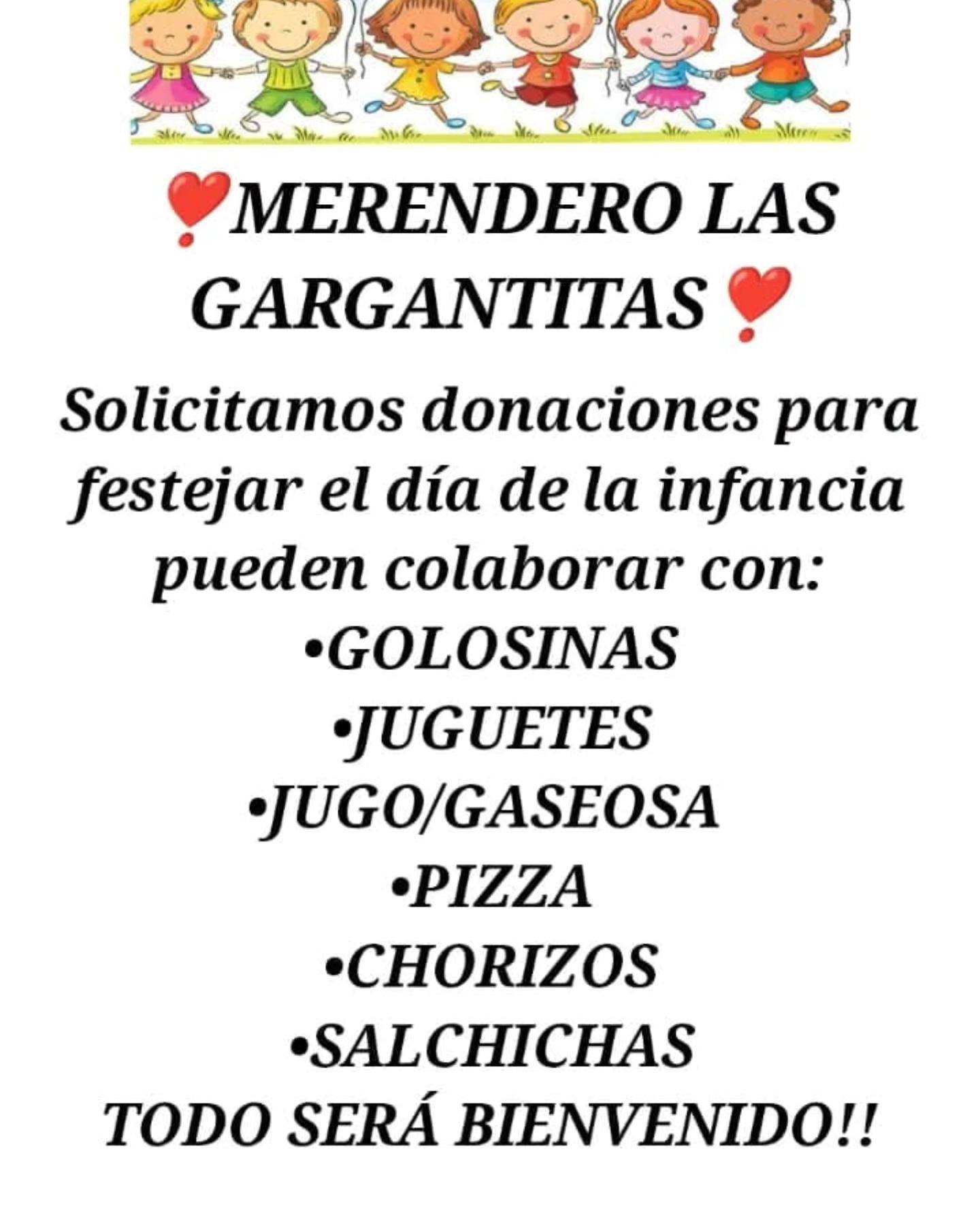 Con el objetivo de regalar una sonrisa a los más chicos en el próximo Día de las Infancias, el Merendero Las Gargantitas inició una colecta solidaria y convoca a la comunidad a sumarse con donaciones para hacer posible una jornada especial.