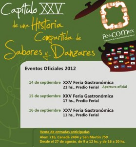 Con el lema, “Capítulo XXV de una historia compartida de sabores y danzares”, el viernes 14 de septiembre a las 21:00 hs., Federación de Comunidades Extranjeras realizará la apertura oficial de la vigesimoquinta Feria Gastronómica de Comodoro Rivadavia. Participarán de la ceremonia inaugural el ministro de Turismo de la Nación, Sr. Enrique Meyer, el gobernador de la Provincia de Chubut, Sr. Martín Buzzi, y el intendente de Comodoro Rivadavia, Sr. Néstor Di Pierro.