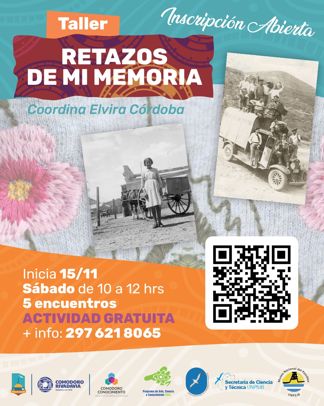 El Museo Nacional del Petróleo será sede del taller “Retazos de mi Memoria”, una propuesta que invita a reconstruir y compartir historias personales, familiares o comunitarias a través de la creación artística. La actividad forma parte del Programa Arte, Ciencia y Conocimiento, desarrollado en convenio entre la Universidad Nacional de la Patagonia San Juan Bosco (UNPSJB) y la Agencia Comodoro Conocimiento.