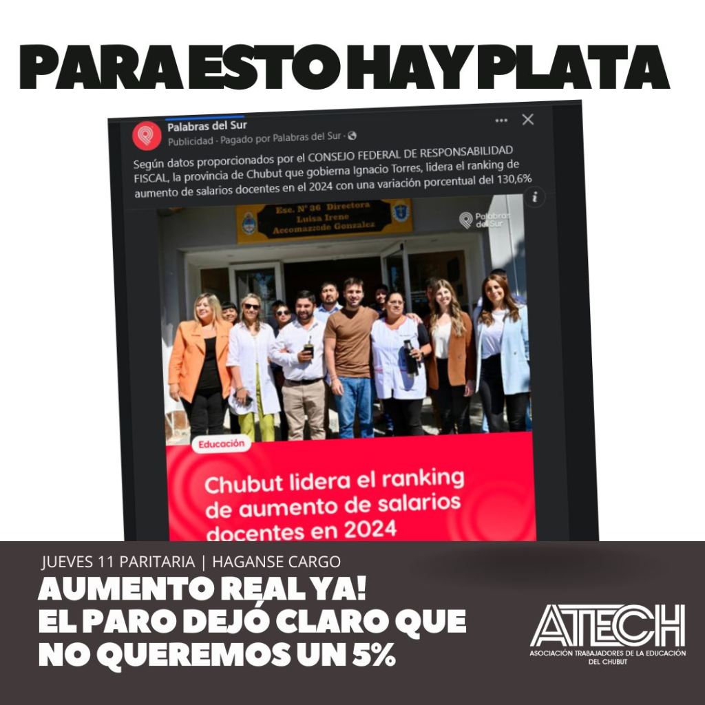 “¡Aumento real ya!”, reclamó el gremio docente, añadiendo que “el paro dejó claro que no queremos un 5 por ciento”.