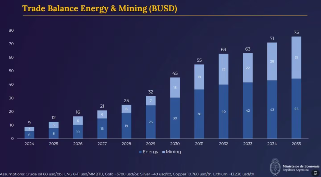 En este escenario, el propio Caputo admitió el lunes que las exportaciones energéticas, que vienen de un año récord, pueden escalar incluso más allá de lo que se preveía, cuando el petróleo se ubicaba en torno a US$60.