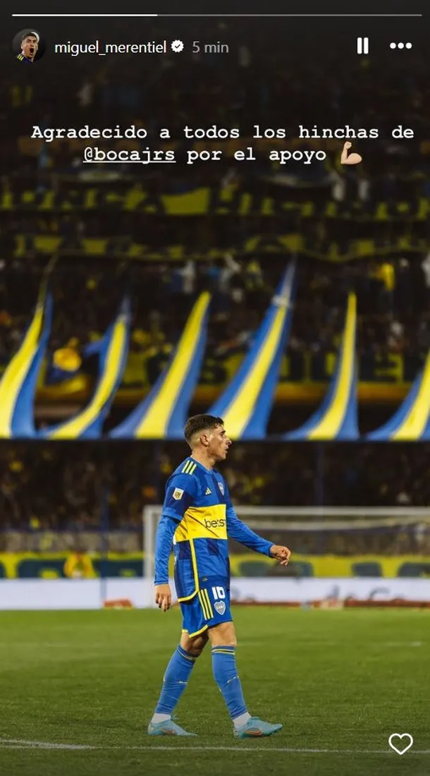 «Agradecido a todos los hinchas de Boca Juniors por el apoyo», escribió Merentiel, junto a un emoji de un brazo en señal de fortaleza, indicando su deseo de seguir adelante y buscar la revancha en futuras competencias.