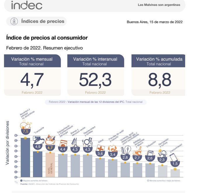 Es que según el INDEC la inflación en febrero fue de 4,7% y se prevé que la cifra de marzo podría arrojar un número similar.