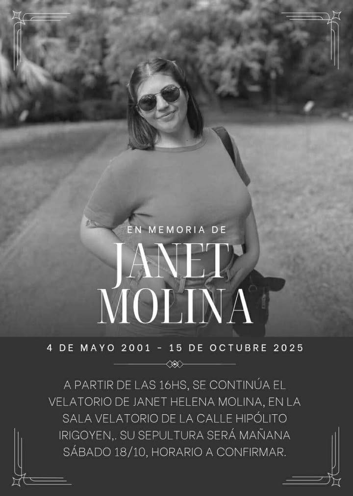 Janet Molina fue estudiante de la Escuela N°707 Yapeyú y egresó en 2019. Además, era sobrina del presidente del Club Palazzo, que también lamentó su pérdida y manifestó su acompañamiento para las familias Molina y Soria.