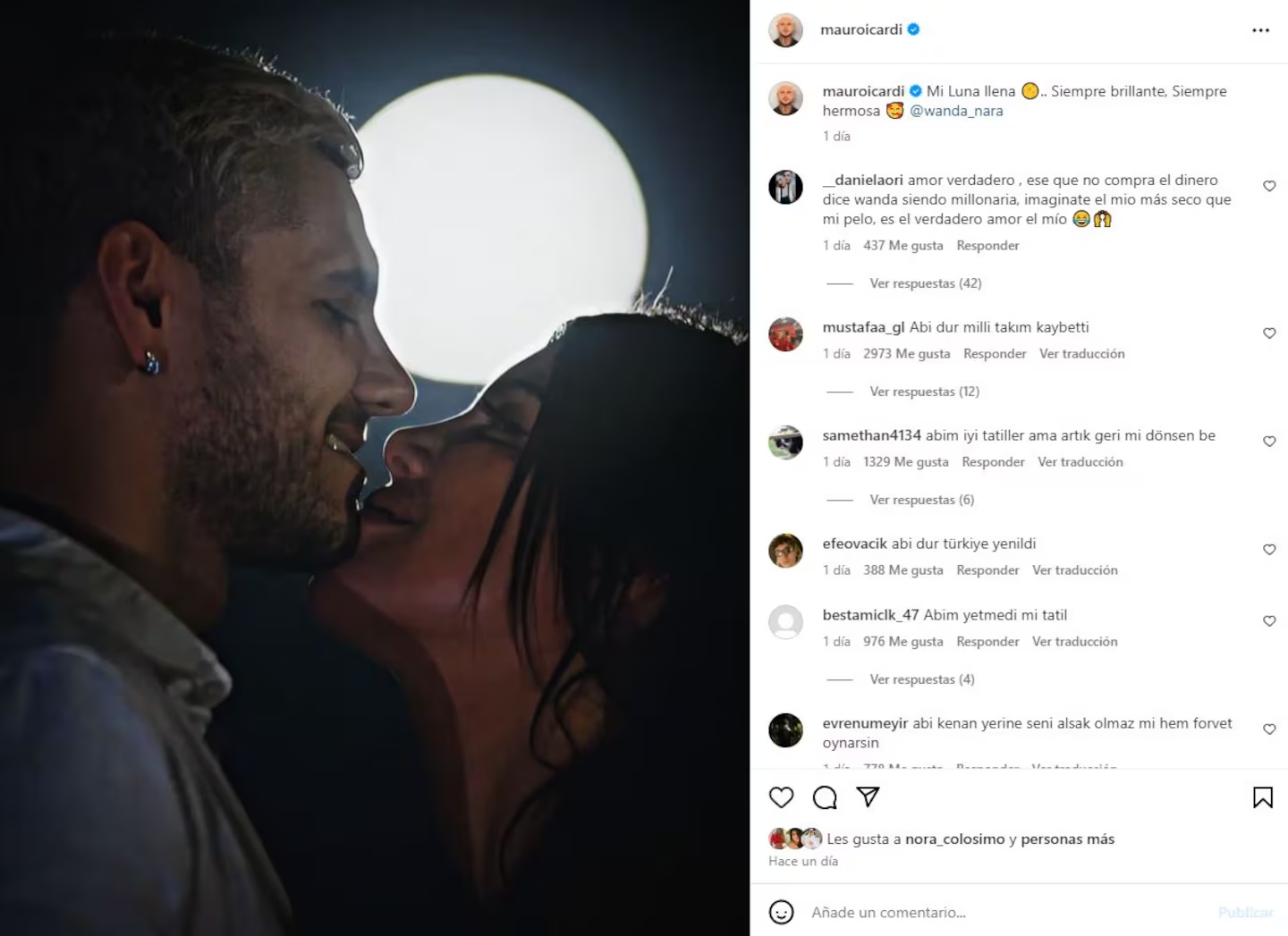 Si bien Wanda likeó la dedicatoria, no comentó absolutamente nada. Solo reaccionó al mensaje de una usuaria que escribió un fragmento de su último tema, “Amor verdadero”.