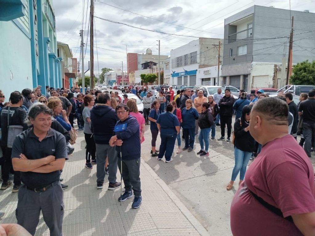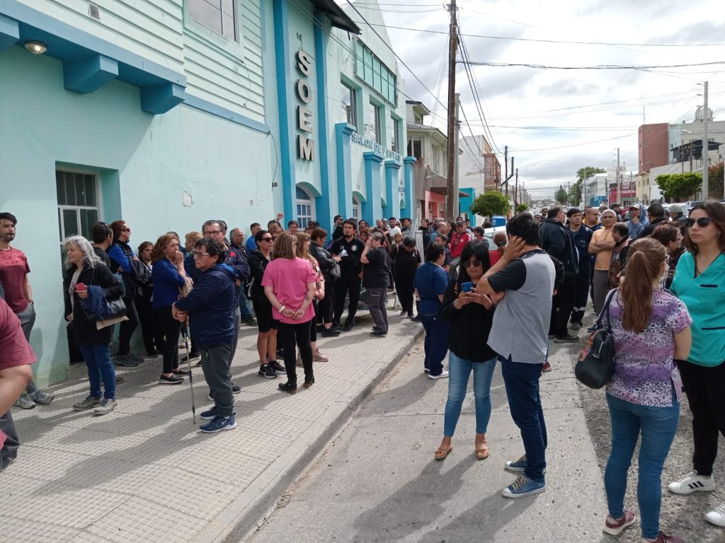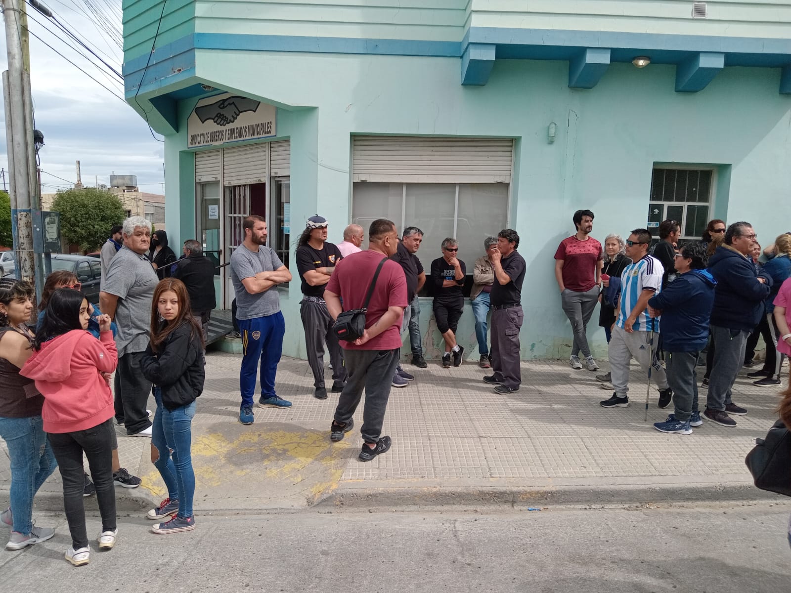 Desde horas de la tarde de este miércoles, empleados municipales reclaman en las afuera del SOEM con el objetivo de entregar planillas firmadas por los afiliados para pedir una asamblea con las autoridades del gremio.