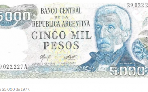 Argentina ya tuvo billetes de 5.000 pesos en el pasado. Por desagios y cambios de signo monetario ya hubo una emisión en la década de 1960, luego reapareció en 1977 con la imagen de José de San Martín anciano. Tras una quita de ceros llegó un billete de $5.000 con la imagen de Juan Bautista Alberdi en 1984. Y con el cambio de moneda durante el gobierno de Raúl Alfonsín llegó en 1989 la emisión de 5.000 australes con el retrato de José Juárez Celman.