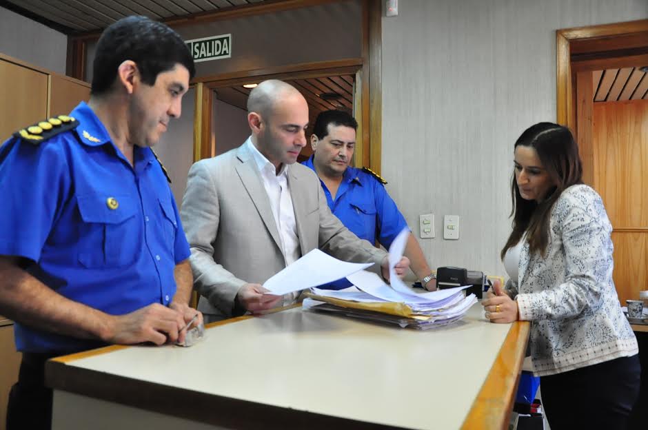 El secretario de Seguridad y Justicia de la Provincia, Federico Massoni, junto al jefe y subjefe de la Policía del Chubut, Leonardo Bustos y Carlos Bidera, presentaron este miércoles ante el procurador general de la Provincia, Jorge Miquelarena, documentación original que acredita el pago de sobreprecios en la compra de alimentos para internos en la Alcaidía de Comodoro Rivadavia.