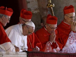 Cuando él salió, una silla similar a un trono había sido preparada en una plataforma, pero Francisco prefirió saludar a los cardenales desde una silla a su mismo nivel, dijo Dolan.