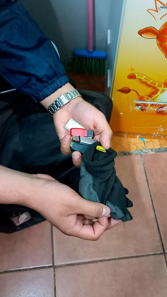 Además del material entregado, la justicia tiene en su poder material recolectado de la casa de los padres del sospechoso, y de la vivienda de su amigo en villa Zavaleta: »Hay dispositivos de almacenamiento, el celular que le sacó la mujer cuando lo increpo, dos teléfonos suyos y un guante en el que se encontraron escondidas siete memorias USB».