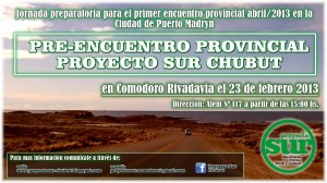 Sobre ese punto, Edgarino Huaiquifil y Alfredo Acevedo, dos miembros de la Mesa Local de Comodoro Rivadavia y coordinadores de la organización del partido, anunciaron que en abril, en Puerto Madryn se realizará el Primer Encuentro Provincial de Proyecto Sur.