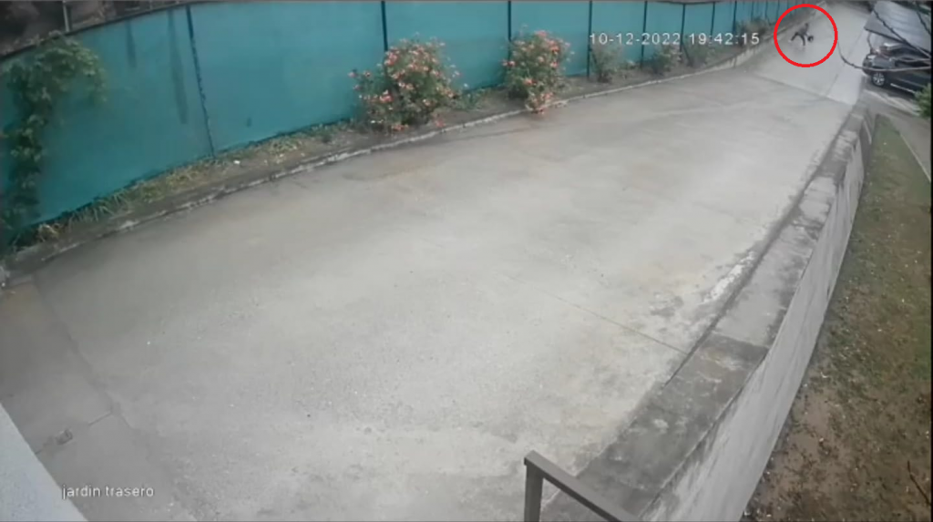 Sin embargo, todo quedó grabado en las cámaras de seguridad que captaron su entrada inicial, el momento en el que salió con el gato y cuando lo arrojó al patio vecino repleto de perros.