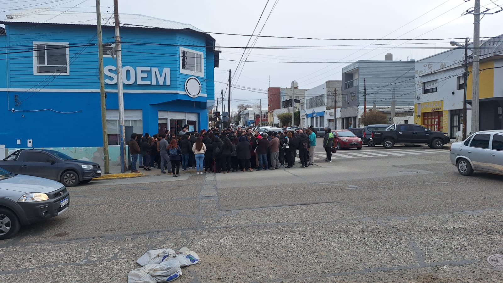 Empleados Municipales, se autoconvocaron en las afueras del Sindicato de Obreros y Empleados Municipales (SOEM) en reclamo al acuerdo salarial firmado este martes.
