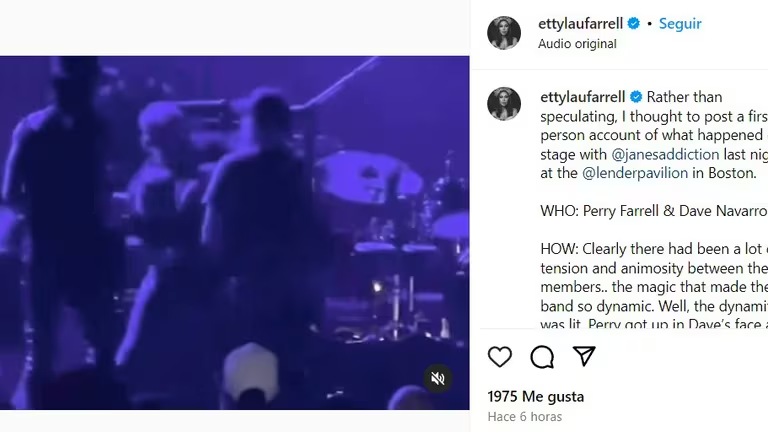 Las imágenes captadas por el público muestran a Farrell acercándose agresivamente a Navarro, empujándolo con los hombros mientras este tocaba la guitarra. Luego, el vocalista parece intentar lanzar un puñetazo contra el cuerpo de su colega.