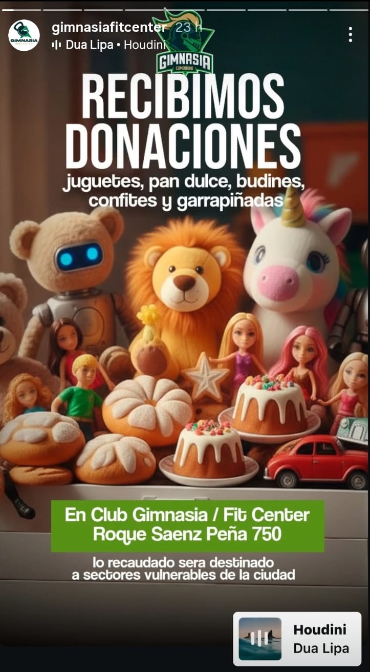 Según el flyer oficial del club Gimnasia y Esgrima de Comodoro, la campaña recibe juguetes, pan dulce, budines, confites y garrapiñadas. Los recursos se destinarán íntegramente a familias en situación de vulnerabilidad, promoviendo la solidaridad comunitaria en esta época festiva.