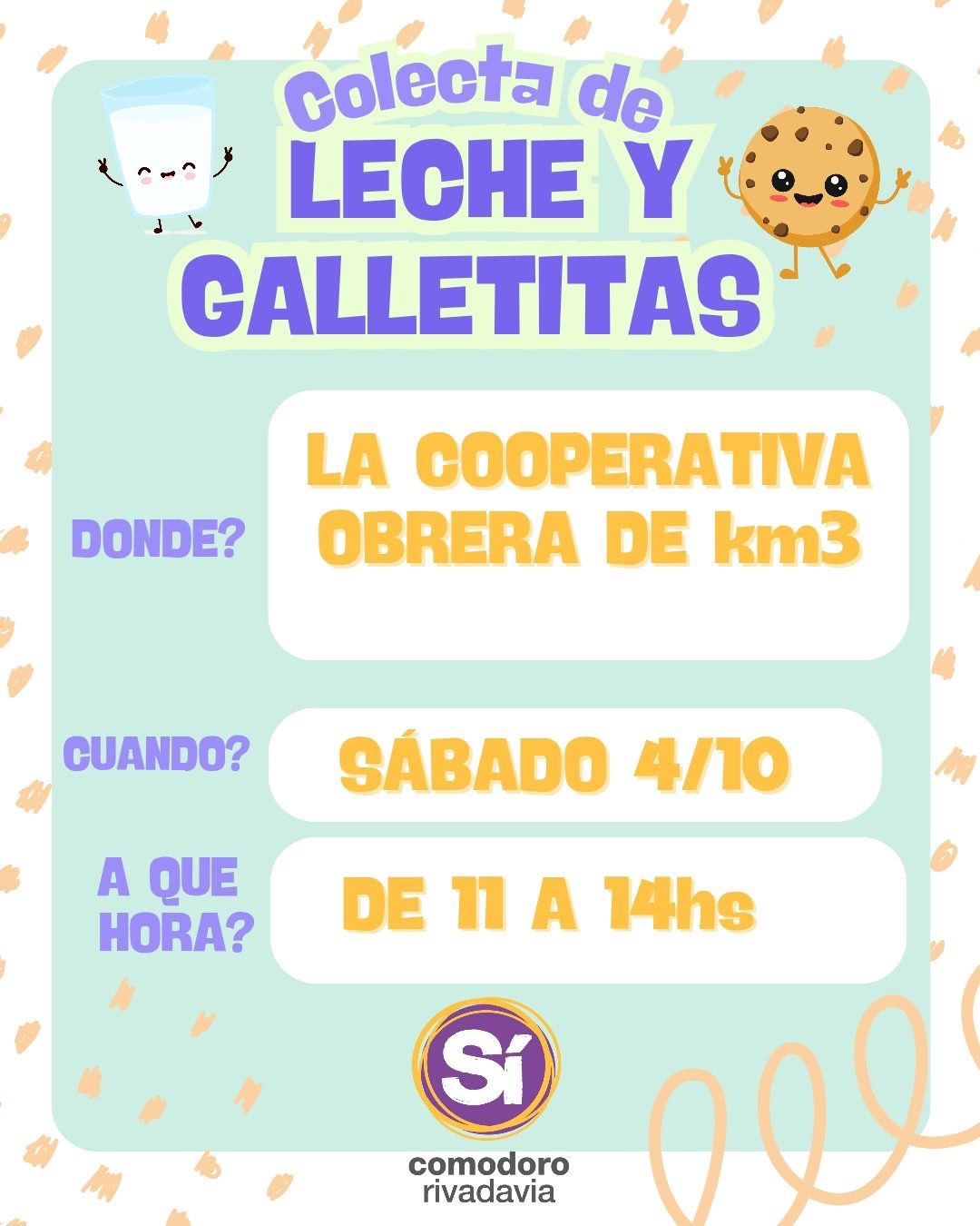 Este sábado 4 de octubre, de 11 a 14 horas, se realizará una colecta solidaria de leche y galletitas en el supermercado La Cooperativa Obrera de Km 3. La iniciativa invita a la comunidad a colaborar con alimentos que serán destinados a personas en situación de vulnerabilidad.