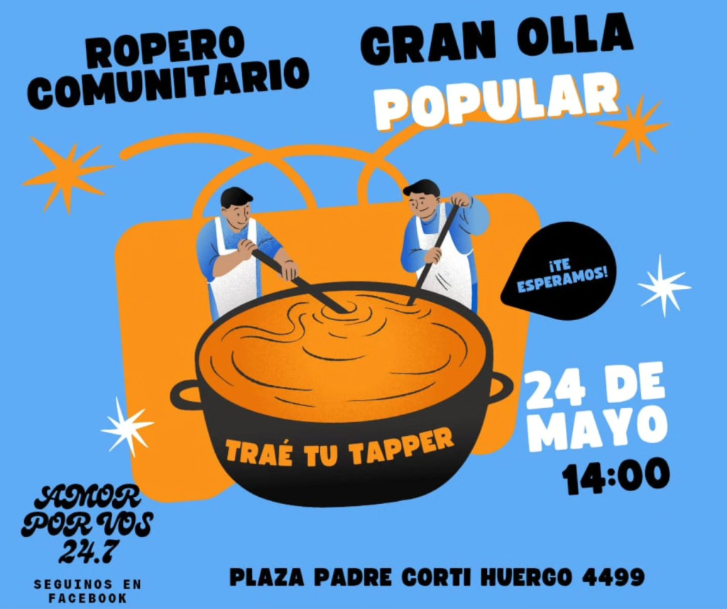 Este sábado 24 de mayo, el grupo comunitario Amor por Vos llevará a cabo una Olla Popular en la Plaza Padre Corti, ubicada en Huergo 4499, en el barrio Máximo Abasolo, justo al lado de la Comisaría Séptima.