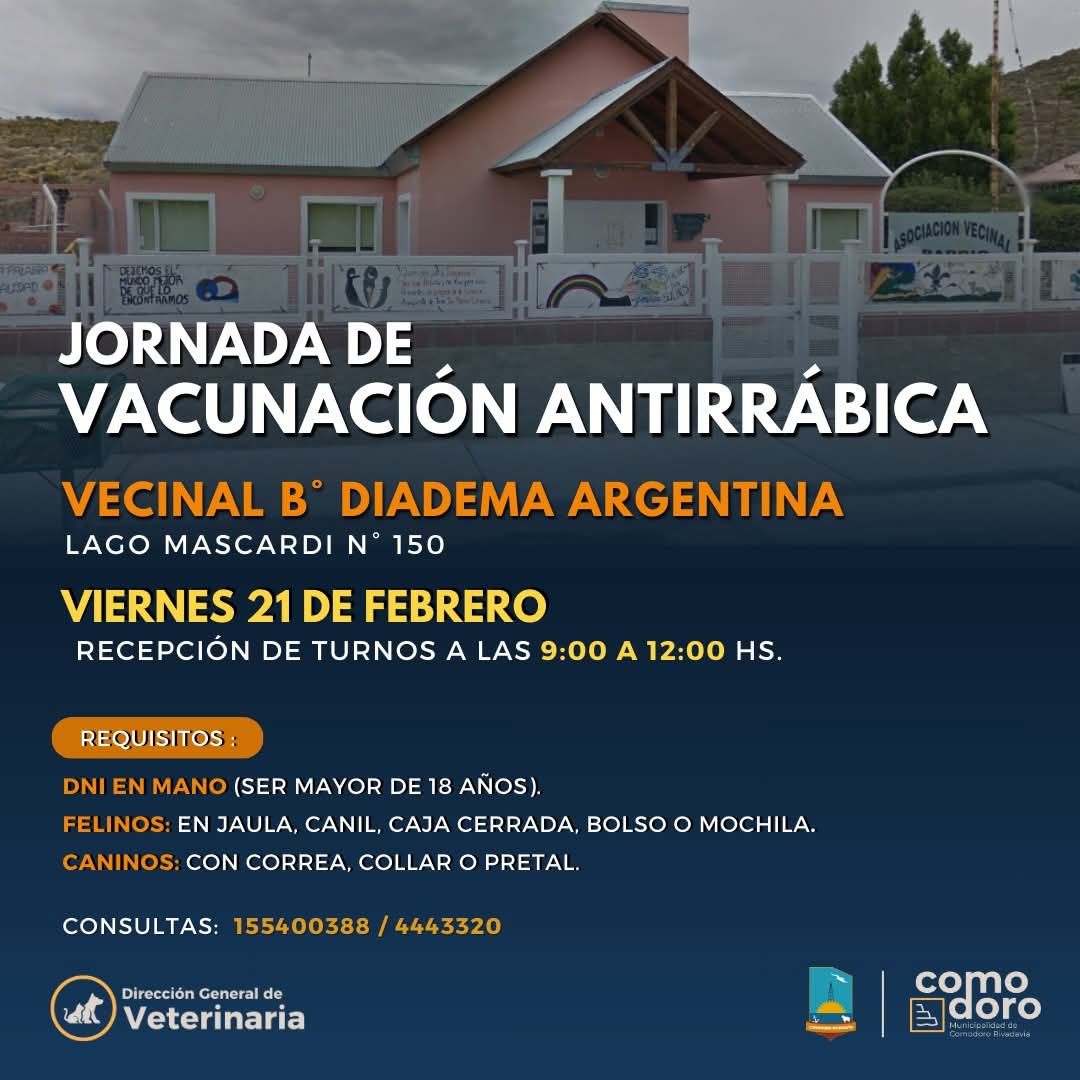 La Dirección de Veterinaria de la Municipalidad de Comodoro llevará a cabo una jornada especial de vacunación antirrábica este viernes 21 de febrero.