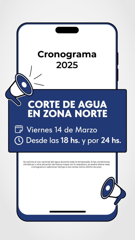 La Sociedad Cooperativa Popular Limitada, informa a sus asociados que este viernes 14 de marzo cortarán el agua en la zona norte de Comodoro Rivadavia, para recuperar reservas en el Puesto La Mata.