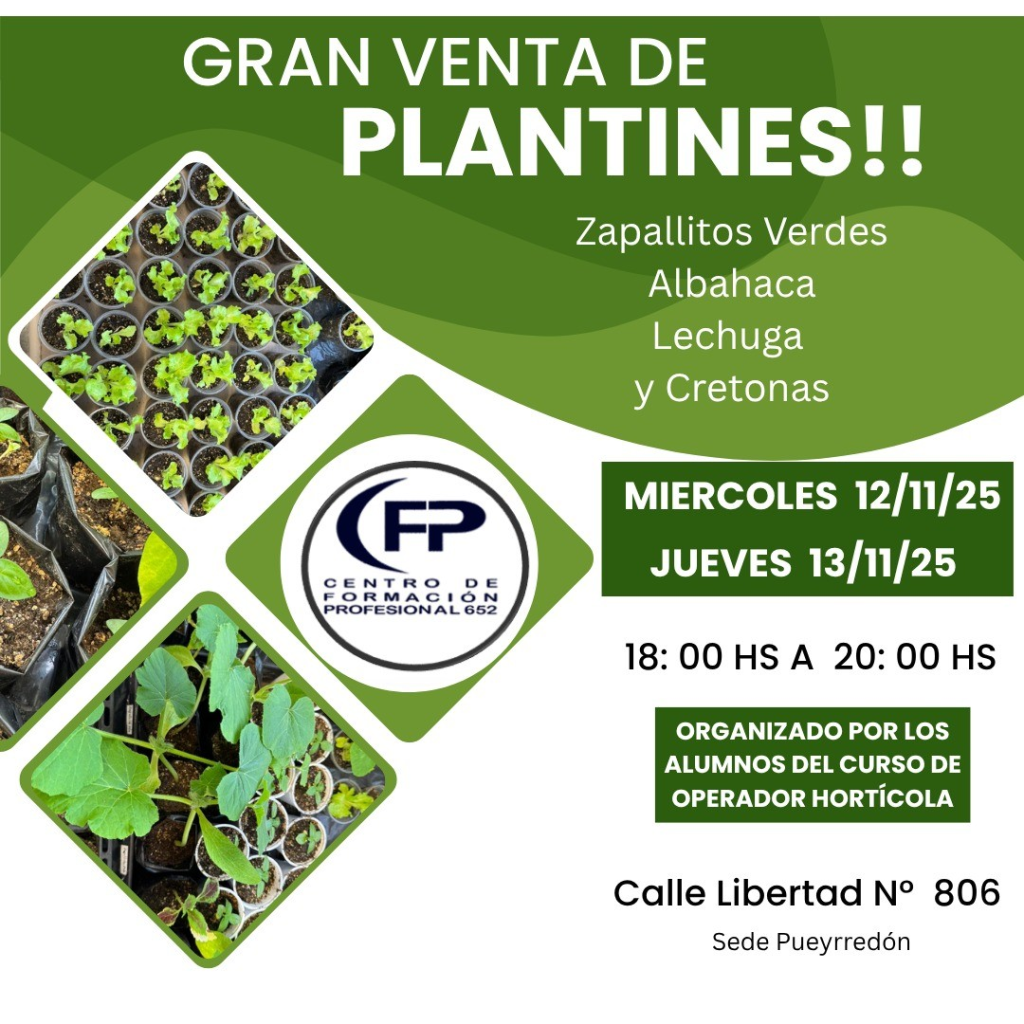 El Centro de Formación Profesional N° 652 informó que los alumnos del curso de Operador Hortícola realizarán una venta de plantines elaborados durante su capacitación.