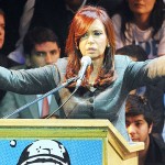 Cristina también dijo que «nunca se ha visto de encender la TV y ver insultos a la primera magistratura todos los días» y agregó que el arco político anti K y la prensa los «critican por nuestros aciertos, por nuestras buenas políticas y si es por eso que sigan criticando». «Tenemos espaldas para aguantar», remató. Los jóvenes K se encendieron con las banderas, los bombos y toda la liturgia peronista.