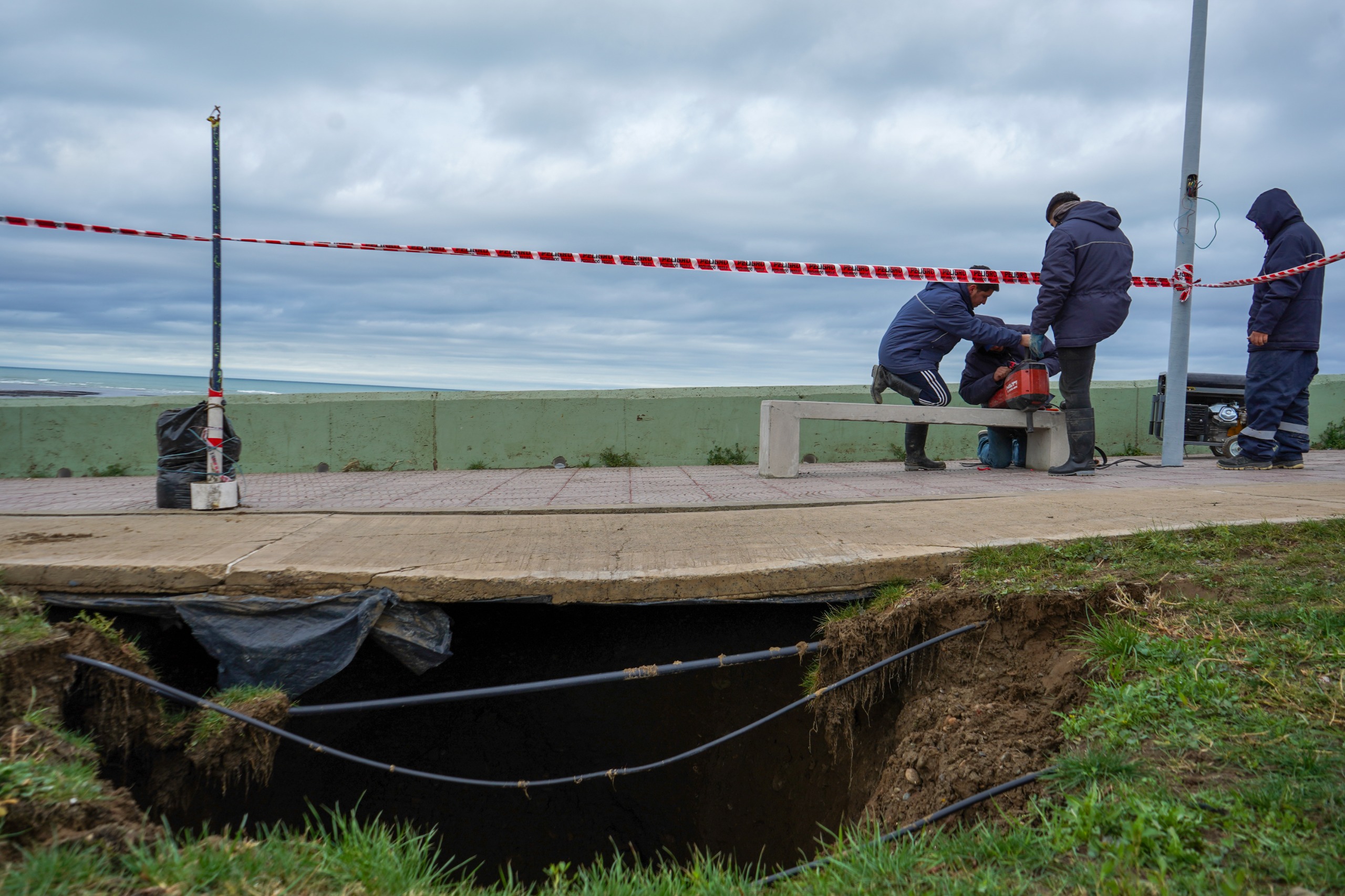 En ese sentido, adelantó que “el lunes, cerca de las 09:30 horas, vamos a estar ingresando con una cámara tipo robot, para chequear si finalmente se produjo un descalce en algún lugar y proceder a hacer el cateo, que también lo hicimos hoy porque hay electricidad de media tensión, fibra óptica, algunas mangueras que conducen servicios. Se tomaron los recaudos necesarios, vallando el sector, y la Cooperativa nos va a facilitar un equipamiento para poder ingresar desde el tramo frente a la ruta, para hacer la primera vista desde esa ubicación”.