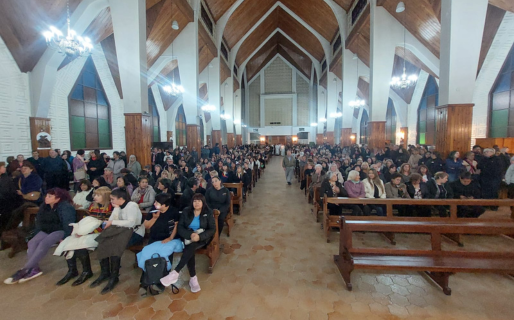 En medio de la misa en memoria del Papa Francisco, el cura de la parroquia habló con el móvil de El Comodorense Radio y compartió: “La Iglesia Católica hoy está esperando que Dios nos mande un Papa con un corazón como el de Francisco, alguien que nos guíe en lo social, político y religioso”.