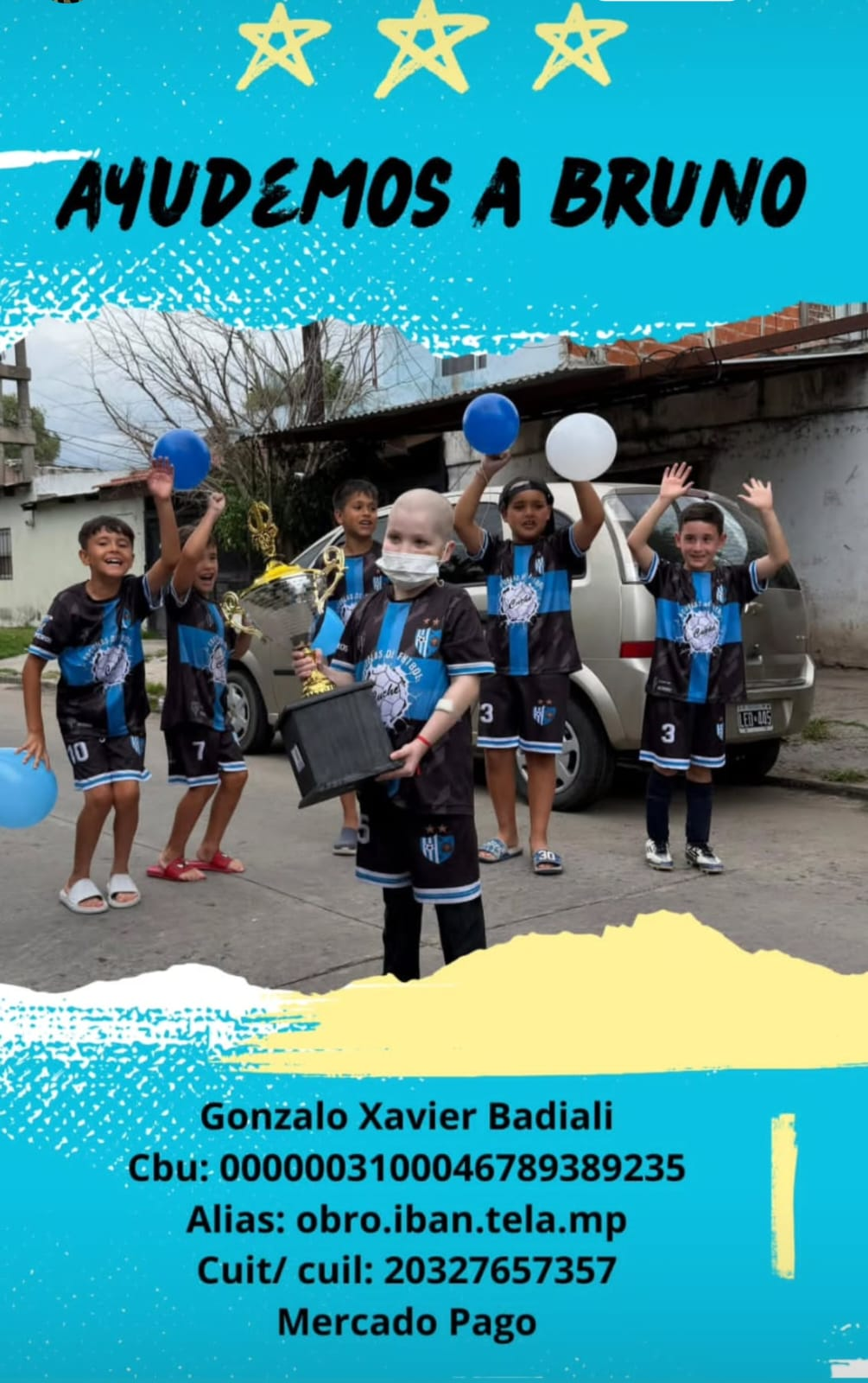 Bruno tiene 8 años y salió campeón con su equipo Vecinos Unidos de Florencio Varela hace unos días. El niño jugó casi todo el torneo, pero de un día al otro recibió un diagnóstico de leucemia que frenó su actividad por completo.