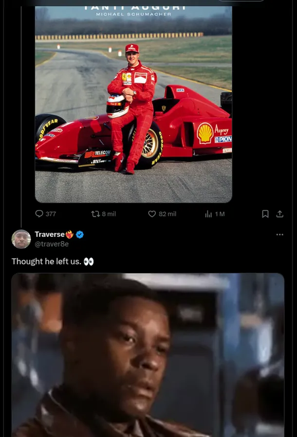 «Siempre en nuestros corazones. Tanti auguri, Michael«, escribieron en el perfil oficial de Ferrari en X, lo que despertó varias respuestas coloridas de parte de sus seguidores, desde un dramático «me hicieron pensar que se había muerto» hasta el localista «suena a que la palmó».