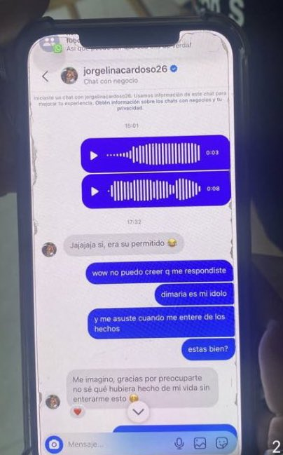 En el chat se puede ver cómo una persona envía dos audios a la cuenta de Cardoso, donde supuestamente le comentaba que Di María le había sido infiel.