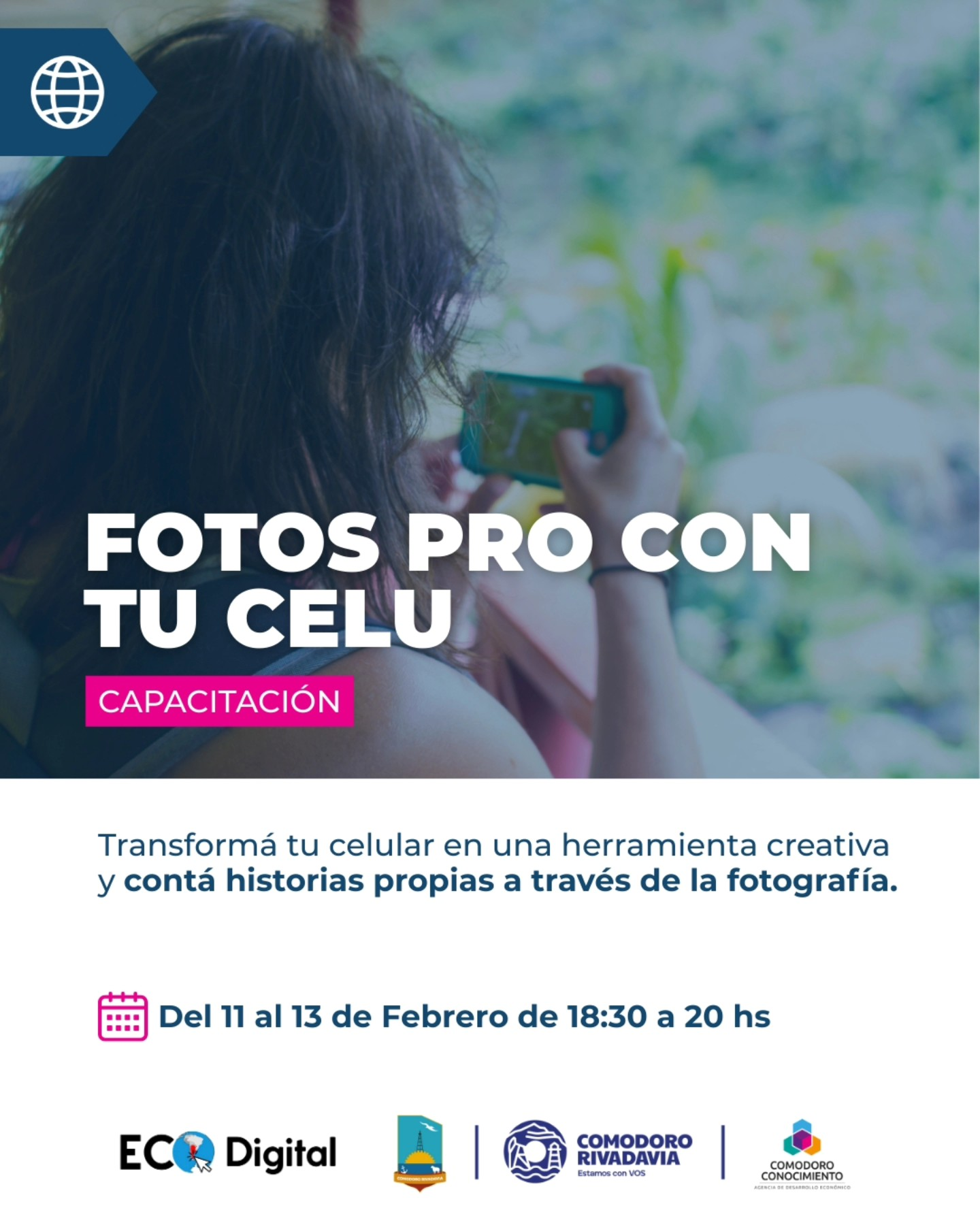 La Municipalidad de Comodoro Rivadavia, mediante Comodoro Conocimientos, ofrece un taller gratuito exclusivo para adolescentes de 12 a 17 años «¡Tu celular, tu historia! Convertite en creador visual».