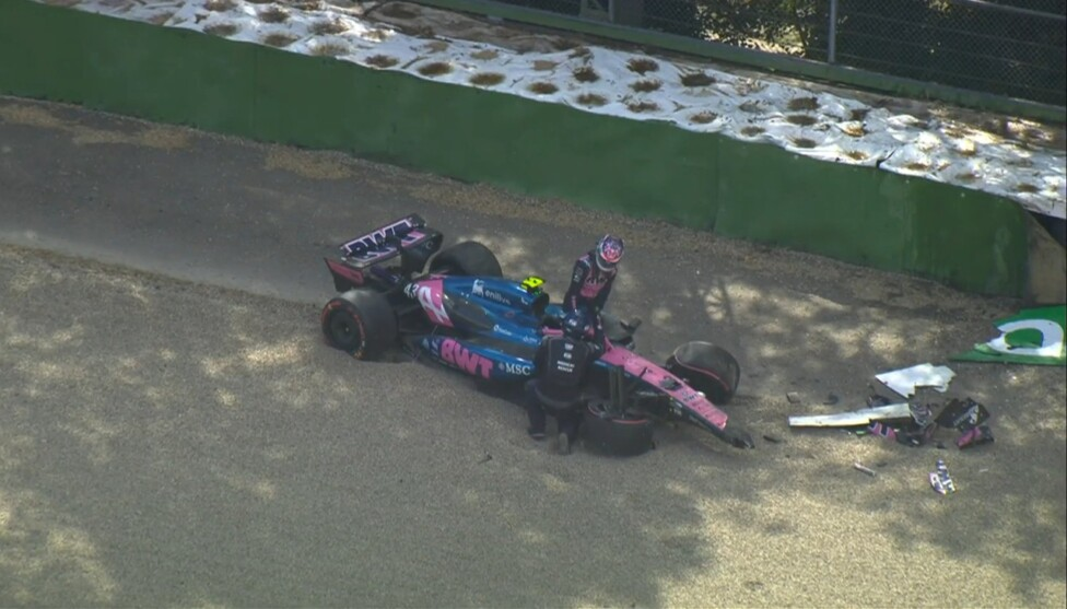 Durante su segundo intento de mejorar su tiempo en la Q1 luego de la bandera roja provocada por el tailandés Yuki Tsunoda de Red Bull, Colapinto perdió el control de su monoplaza y sufrió un fuerte impacto que dañó seriamente la parte derecha del Alpine, incluyendo la suspensión.