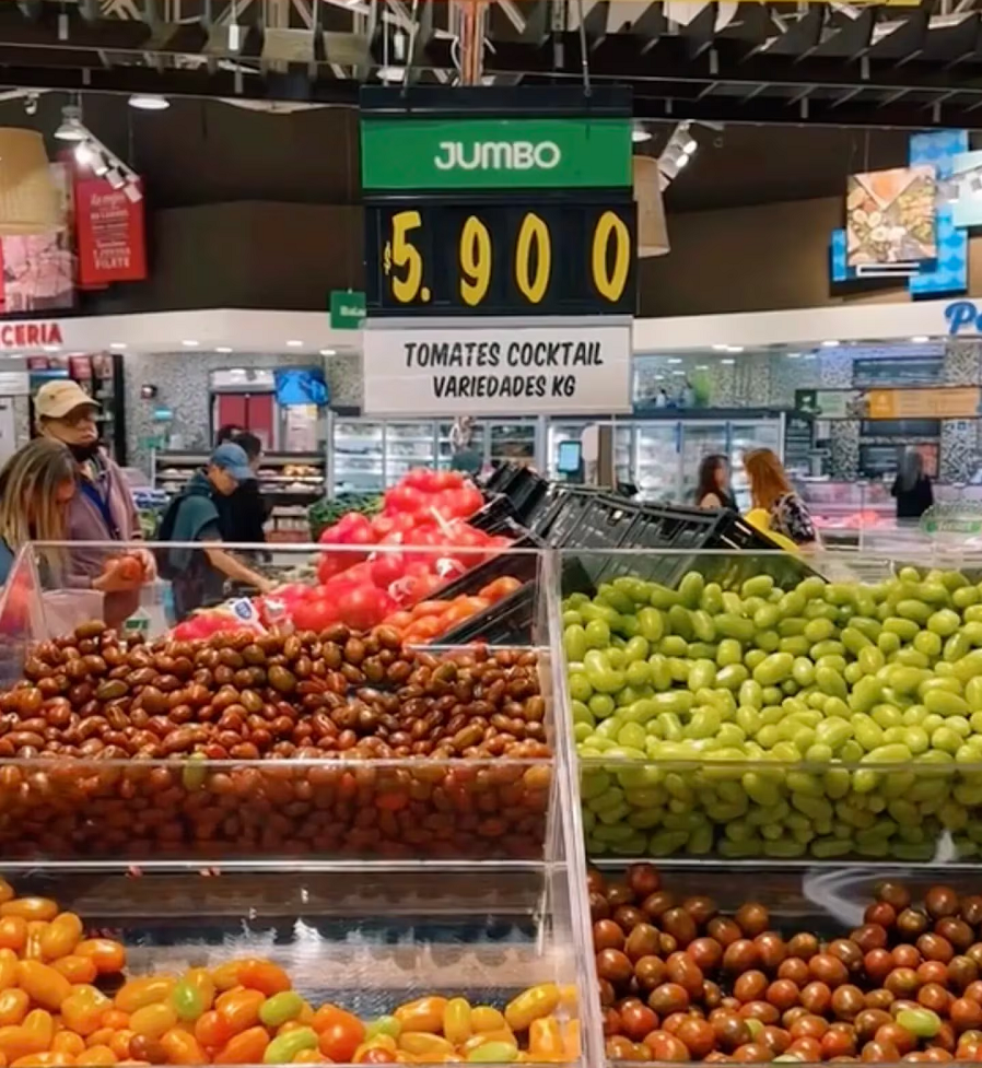En una recorrida por Jumbo, uno de los supermercados más grandes de Chile, un tiktoker mostró los precios de varios productos de consumo masivo. Actualmente, el dólar en Chile está a $944 pesos chilenos, lo que facilita muchísimo hacer las cuentas. Es prácticamente uno a uno con el peso argentino.