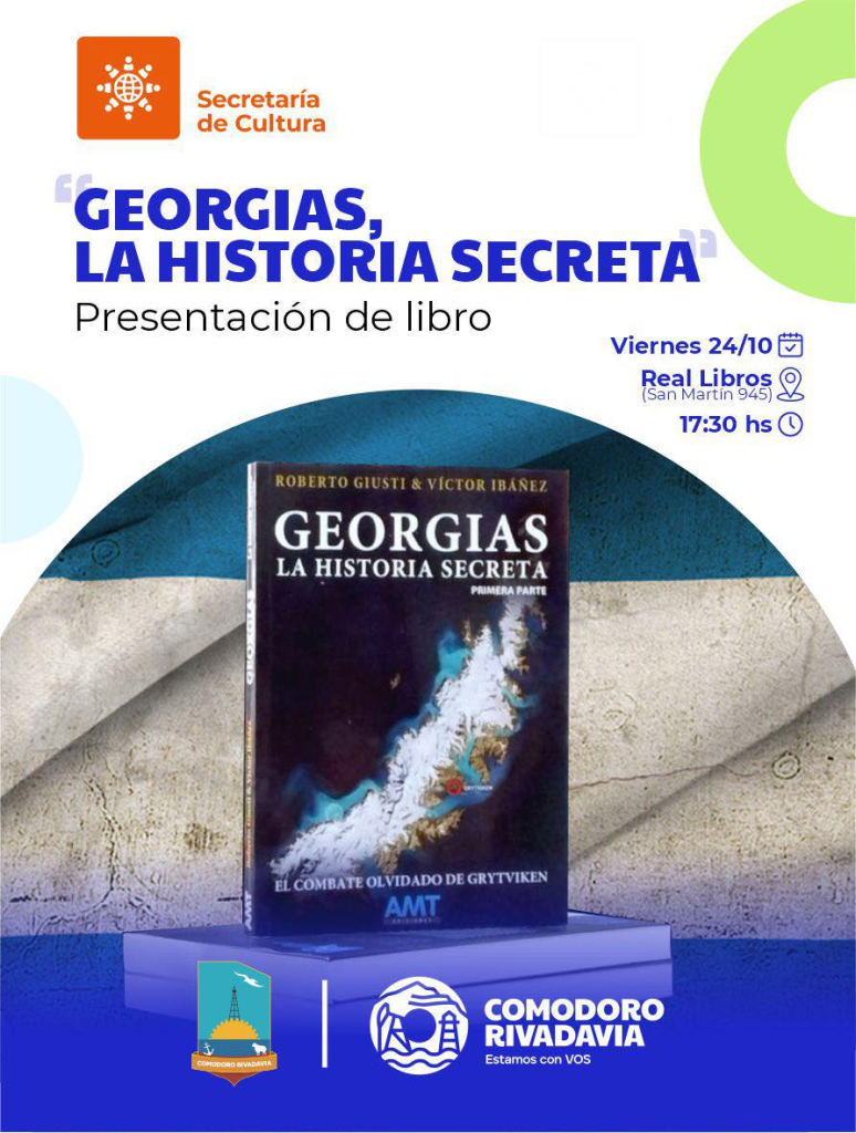 La Secretaría de Cultura de Comodoro invita a la comunidad a participar de la presentación del libro «Georgias: La historia secreta», una obra literaria que ofrece una mirada detallada sobre la Batalla de Grytviken en las Islas Georgias del Sur durante la Guerra de Malvinas en 1982.