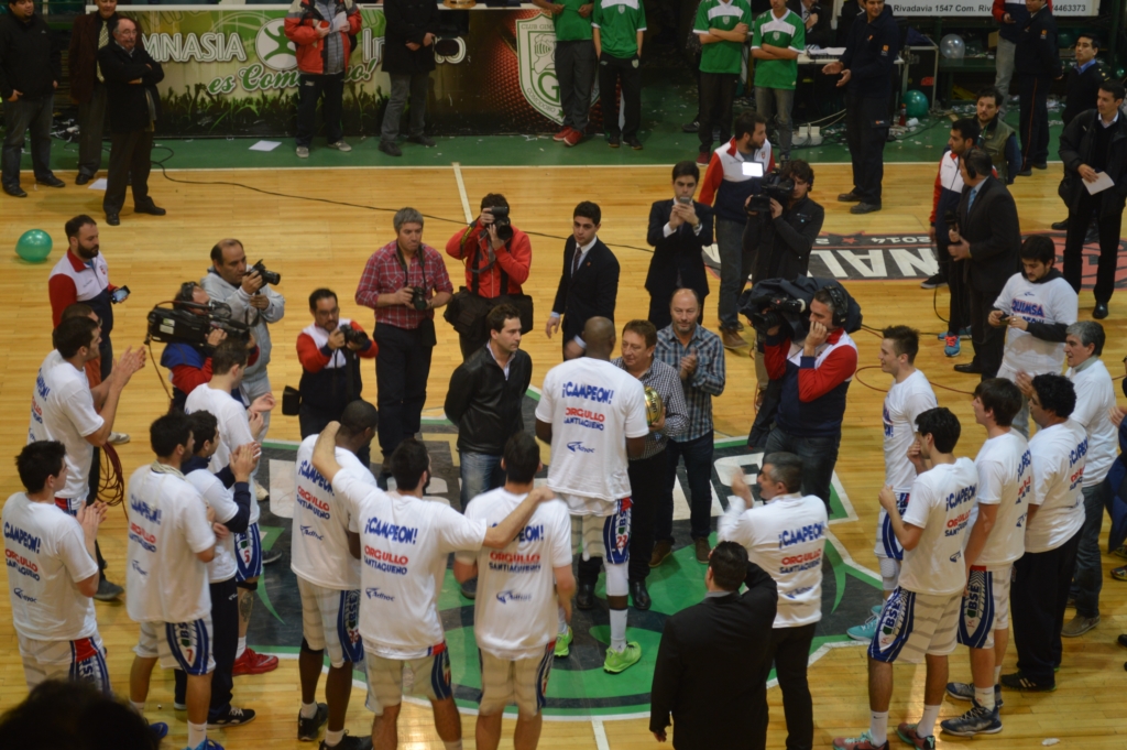 En el último parcial, Quimsa salió con todo a buscar el partido y por primera vez logró ponerse en ventaja con triple de Chávez y un par de dobles de Deck. Un triple de Aguerre mantuvo a Gimnasia palo a palo, pero en el siguiente ataque, el mens sana sufrió una baja muy importante: Scala pisó mal y debió salir de la cancha muy dolorido. Con un equipo corto, no era un dato para nada menor. Gimnasia aguantó lo que pudo pero perdió ataques por malas decisiones de tiro y un triple de Deck puso a Quimsa dos arriba. En los últimos minutos, los santiagueños trataron de congelar el partido y Gimnasia lució más desesperado errático. Aún así, en defensa estaba más firme y por eso la diferencia se mantuvo hasta el final. Faltando pocos segundos, increíblemente el MVP Nicolás Aguirre coronó un mal partido personal cayéndose y regalándole el balón a Schattman: el “verde” tuvo dos chances de empatar en la misma jugada, pero no tenía que ser: erró Leo y el rebote de Cavaco abajo del aro tampoco entró. Era el fin de la ilusión. Quimsa ganó por 70-68, se coronó campeón merecidamente por primera vez en su historia luego de una excelente temporada sin altibajos. Lo de Gimnasia también es para aplaudir de pie. Con un plantel corto llegó hasta la final superando adversidades, pero sobre todo a sí mismo. Un equipo reconocido por todos los amantes del básquet y por supuesto por toda una ciudad que se ilusionó y, al ver que lo alcanzó, lo aplaudió mientras moría de pie. El campeón es uno sólo y esta vez le tocó a Quimsa.
