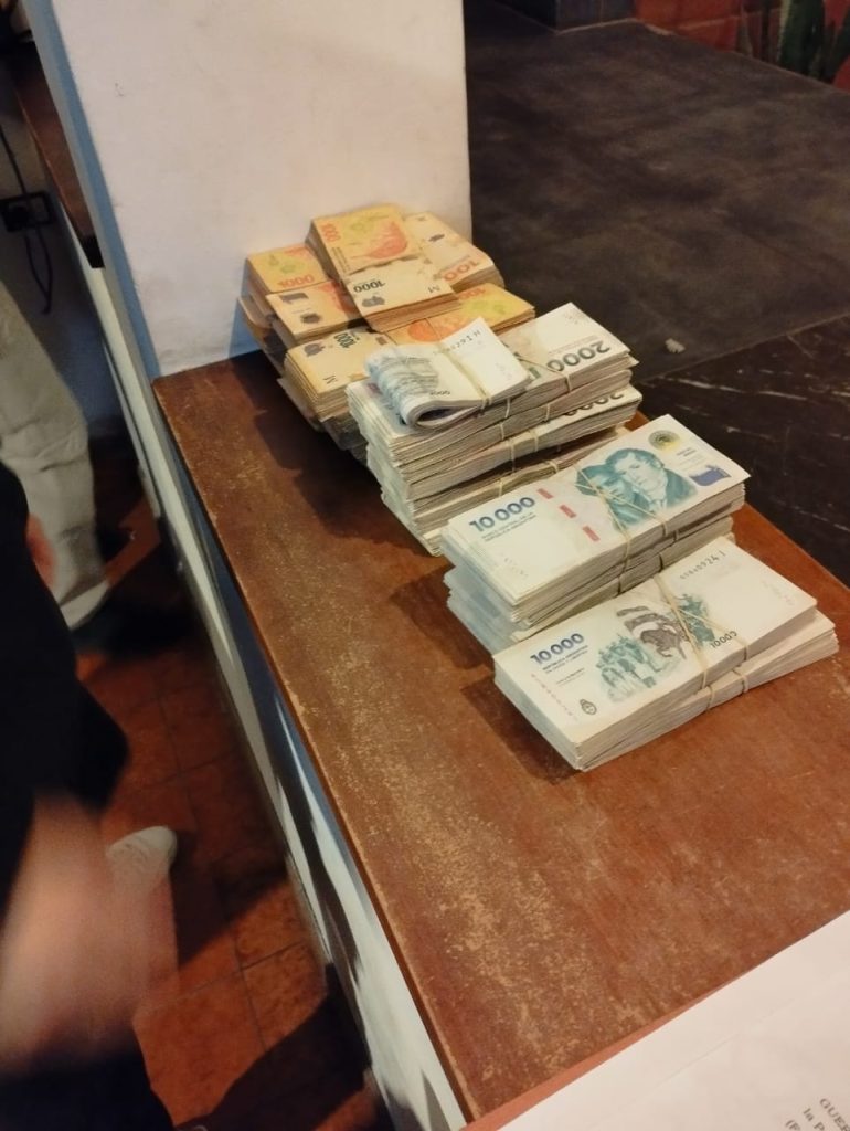 Durante los allanamientos, se logró el secuestro de una suma cercana a los 30 millones de pesos en efectivo, 14.100 dólares (equivalentes a unos 17 millones de pesos), 50 euros, una máquina contadora de billetes, dos dispositivos POS para billeteras virtuales, notebooks, celulares y numerosa documentación vinculada a las estafas.