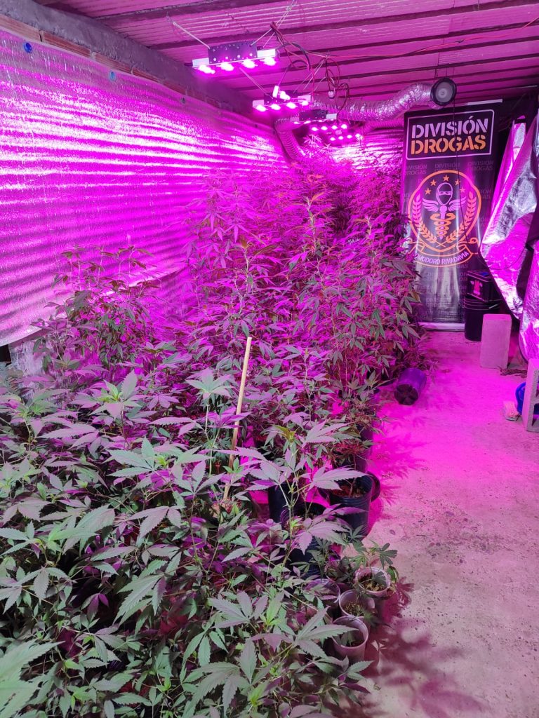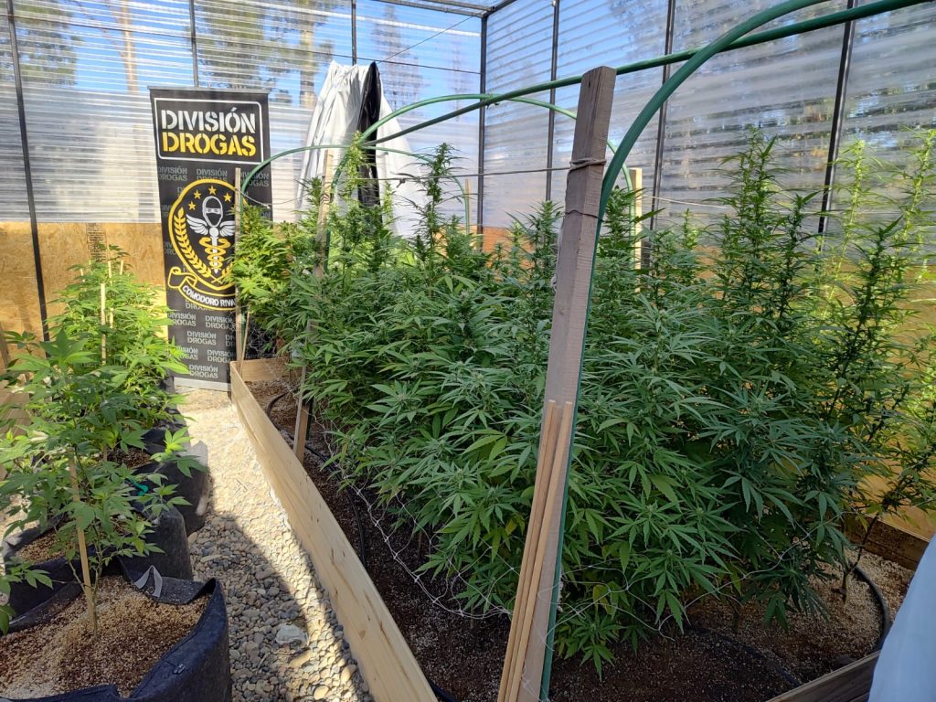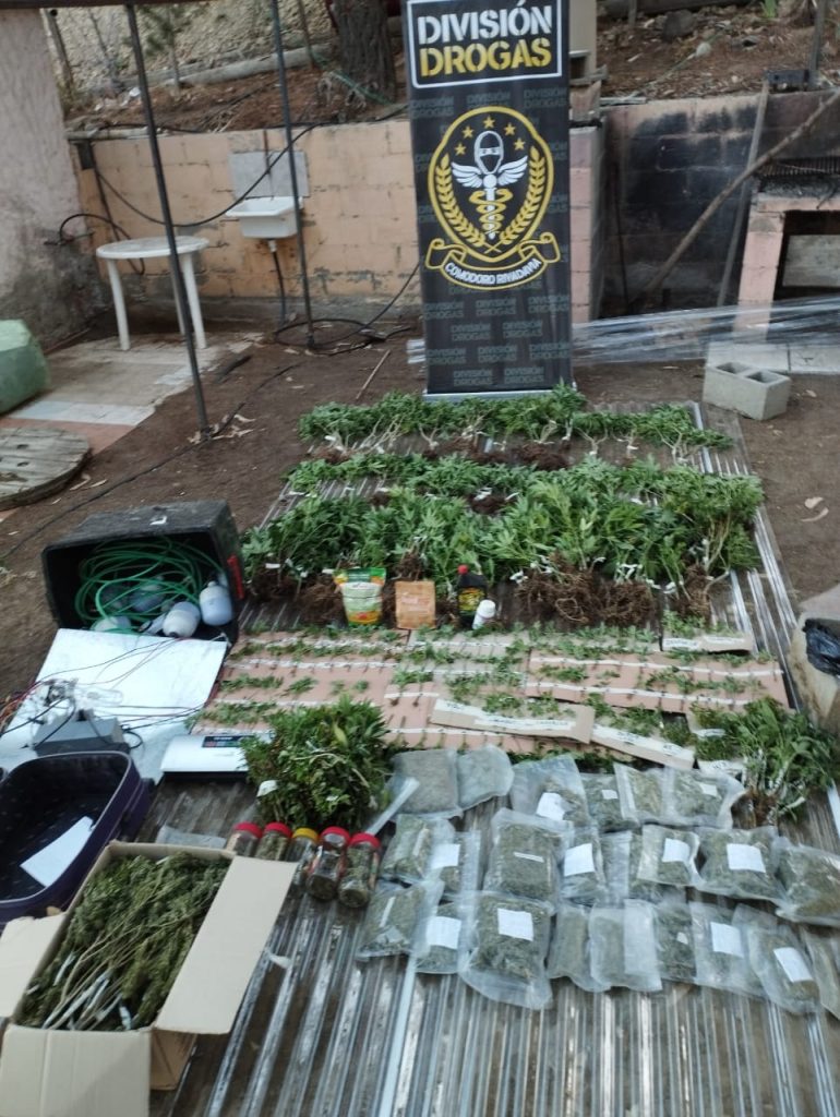 En el lugar se descubrió un garaje acondicionado con tecnología de cultivo de marihuana, con 149 plantas de Cannabis Sativa. Dentro de la vivienda, se encontraron cogollos y picadura de marihuana distribuidos en varios lugares, junto con elementos asociados al comercio de estupefacientes, como balanzas de precisión y dinero en efectivo. En el fondo del patio, se halló un invernáculo con 56 plantas de Cannabis Sativa en floración.