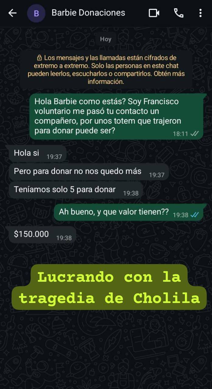 Boudargham, quien se encontraba colaborando con el dispositivo de asistencia a los afectados por el fuerte siniestro que golpeó a la localidad días atrás, se presentó en la comisaría local para denunciar, personalmente, que un grupo de sujetos «traían donaciones desde la localidad de Bariloche y, en lugar de entregarlas a los vecinos, las vendían para su propio beneficio», reza la denuncia a la cual este medio tuvo acceso.