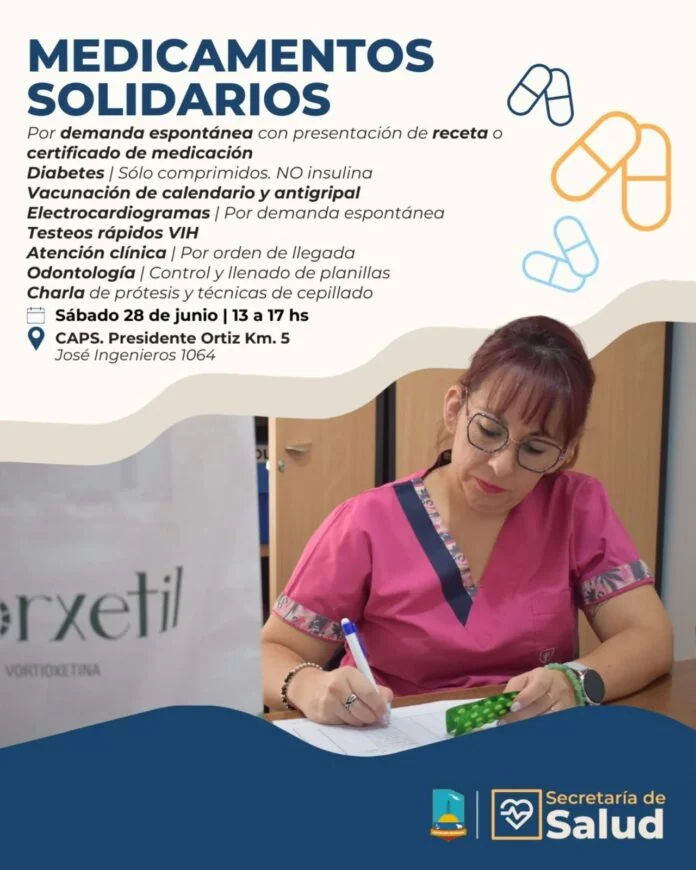 Durante la jornada, los vecinos podrán retirar medicamentos de manera gratuita presentando receta médica o certificado correspondiente. Además, el equipo de salud ofrecerá controles de enfermería, vacunación, atención clínica y la posibilidad de realizar electrocardiogramas.