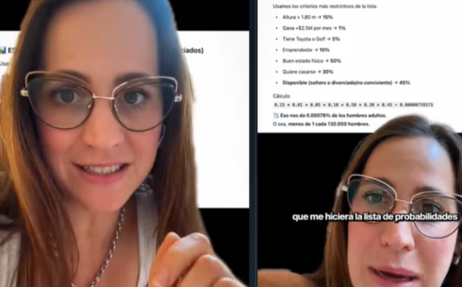 Luego de eso, el ChatGPT le dio su respuesta de cuántas posibilidades tenía de encontrar un hombre con esas características en el país y la sorprendió por completo. Le aseguró que tenía 0,000076% de chances. “Osea, 1 en 130 mil hombres”, aclaró ella.