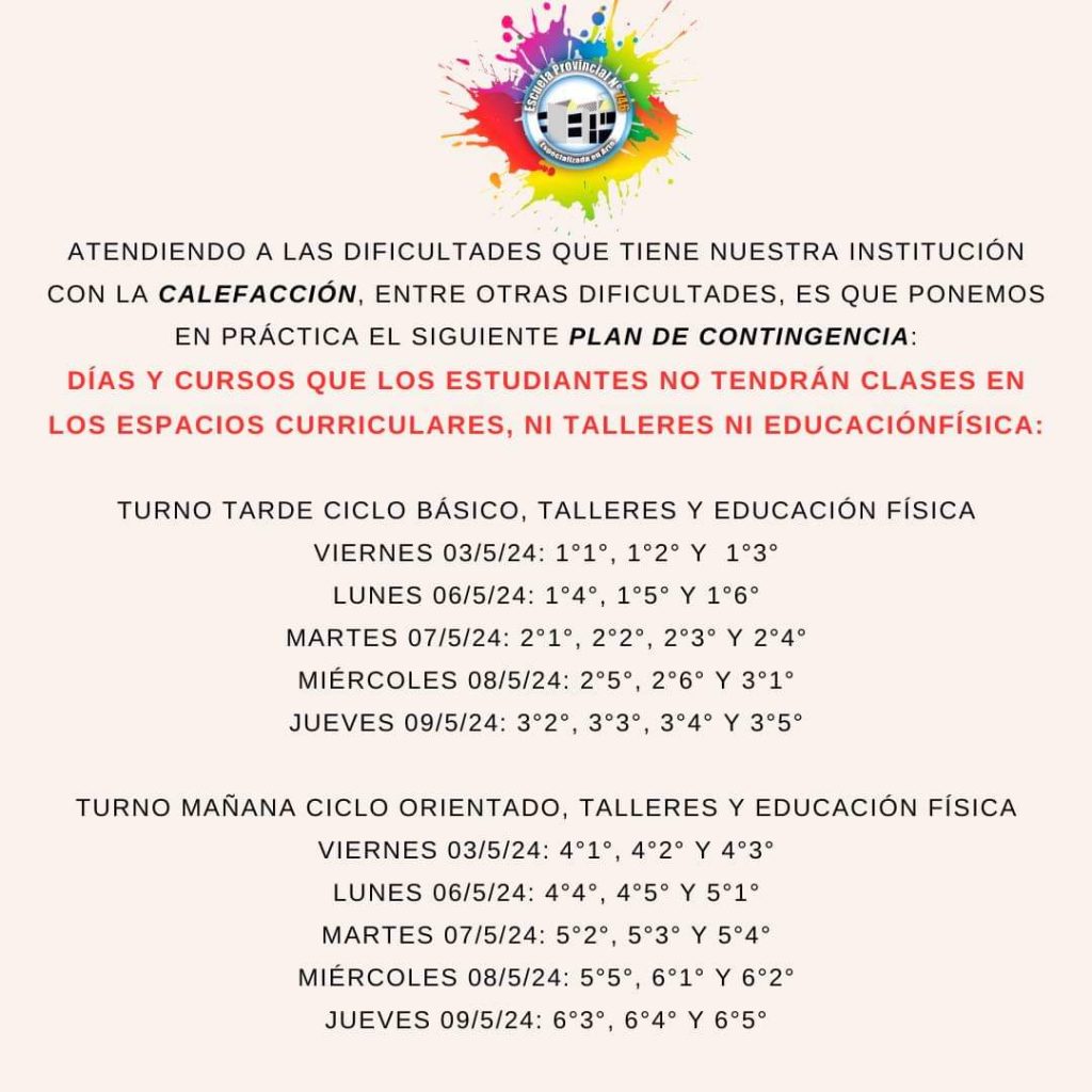 “La idea del plan de contingencia-explicó- es que los alumnos pierdan las menos clases posibles pero que estén en un lugar resguardado porque hay aulas enteras que, con los días como hoy, estaban completamente heladas y los chicos no pueden estar ahí”-agregó.
